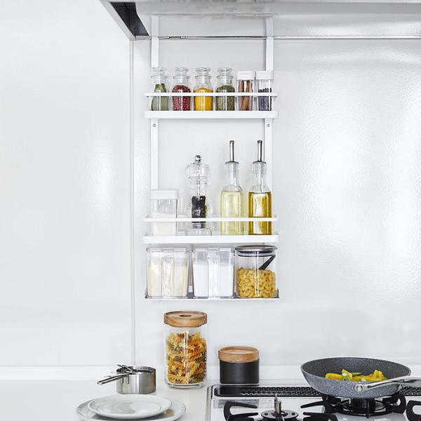 料理中でもコンロに立ったまま手を伸ばせば、使いたい時にスパイスがサッと取れる!便利なラックです。