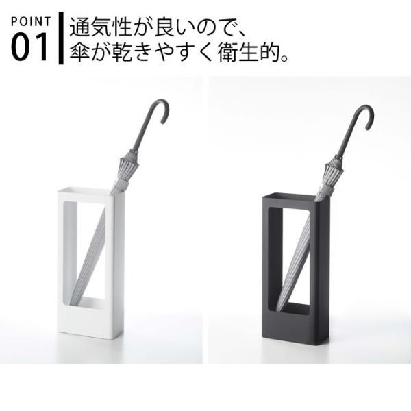 シンプルでスタイリッシュな傘立て、通気性がよく湿気がこもらず衛生的省スペースなスリムタイプ。
