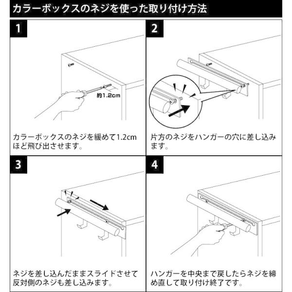 カラーボックスに元々付いているネジを活用するのでドライバー1本だけで取り付けられるのが嬉しい仕様。