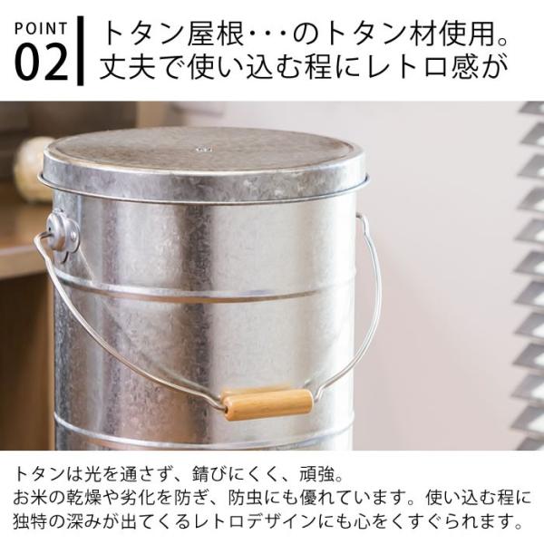 まるでレトロな雑貨のようなおしゃれなブリキの米びつ。