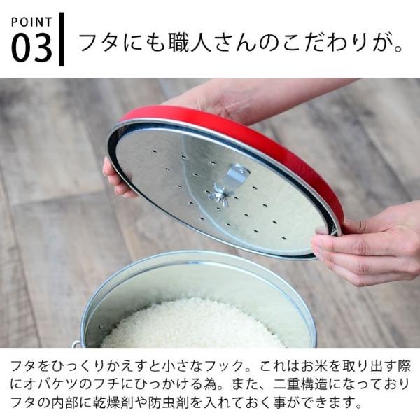 バケツ一筋の職人が『毎日食べるお米をおしゃれに使いやすく保存したい』という声を受け、細部にまでこだわり生み出した一品です。