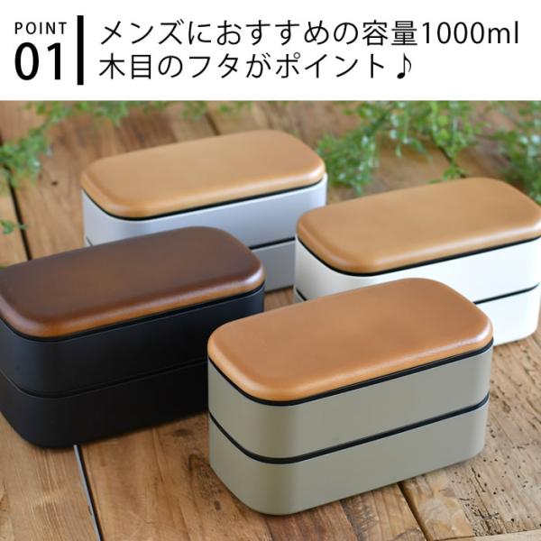 お弁当箱 大容量 MIYS ミース 木目メンズスクウェア弁当 1000ml 男子 おしゃれ ランチボックス 日本製 2段 レンジ対応 食洗機対応 学生 シンプル かっこいい