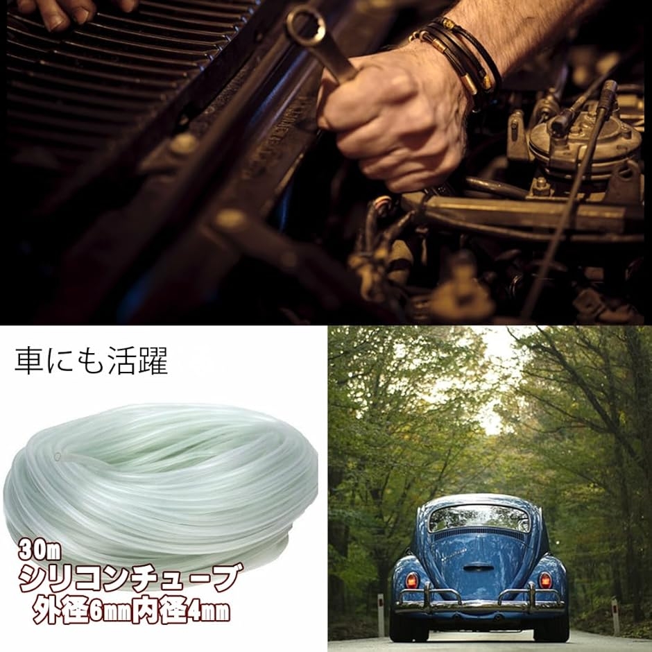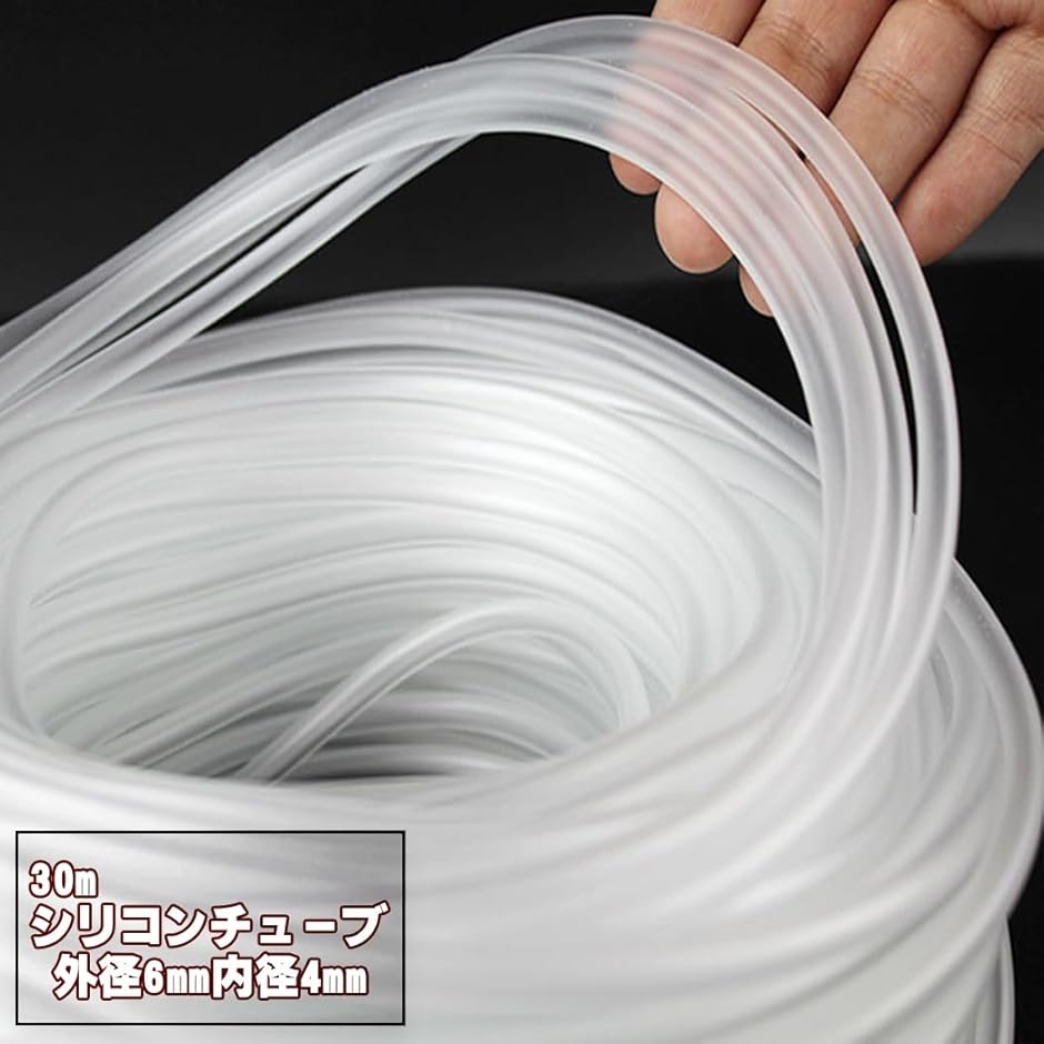 エア チューブ ホース ソフト シリコン アクアリウム 水槽用 外径 6mm 内径 4mm MDM (透明, 30m)