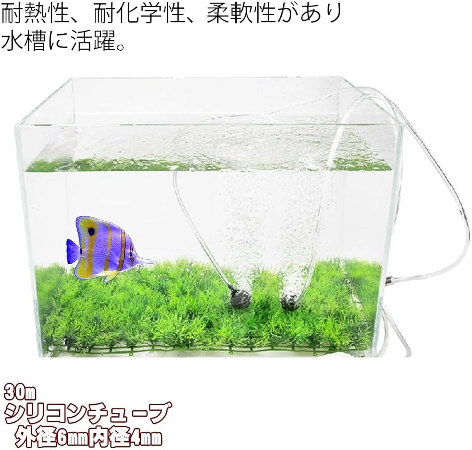 熱帯魚や金魚などの水槽内のエアレーションやエアストーンなど使用目的に合わせた様々な用途に対応可能。