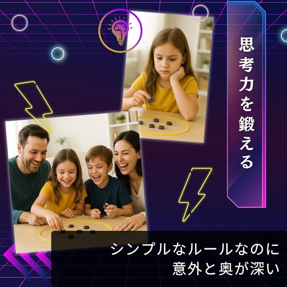 シンプルなルールであるにも関わらず奥が深いゲームとなっており、楽しみながら学べるため、コミュニケーションツールとして幅広い年代でプレイいただけます。