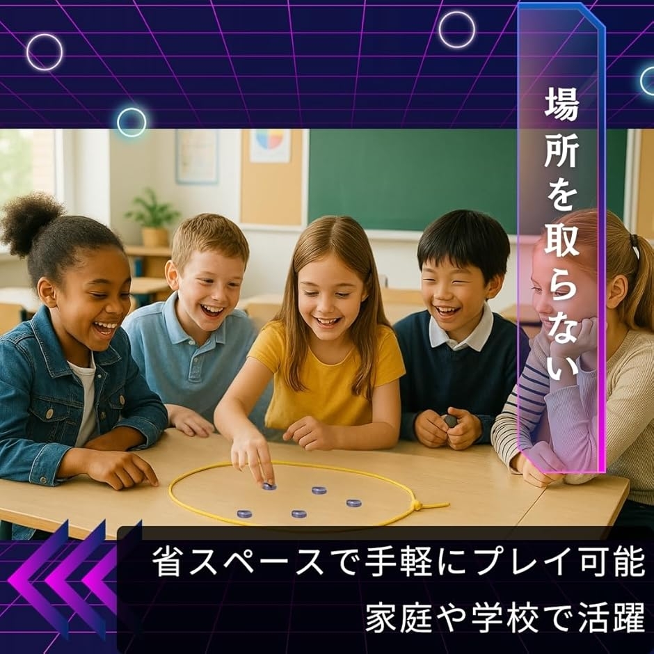 場所を選ばず少しのスペースで手軽にプレイ可能で、家庭や学校、移動中の車内でも活躍。