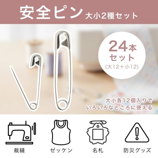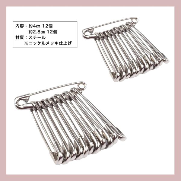 安全ピン 大小2種セット 大4cm 小2.8cm 各12個 おしゃれ 手芸 補修 名札 服飾 小物留め スチール ほつれの応急処置