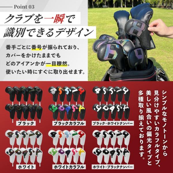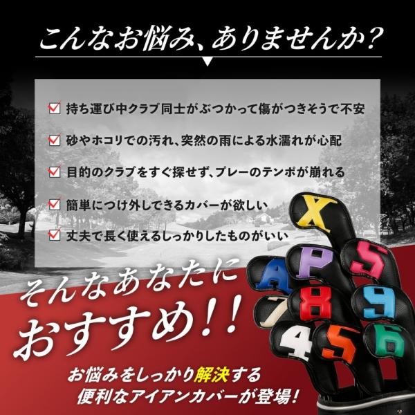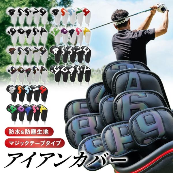 ゴルフアイアンカバー ゴルフヘッドカバー ヘッドカバー ゴルフヘッドPU革 ヘッド保護カバー 防水 マジックテープ式 10点