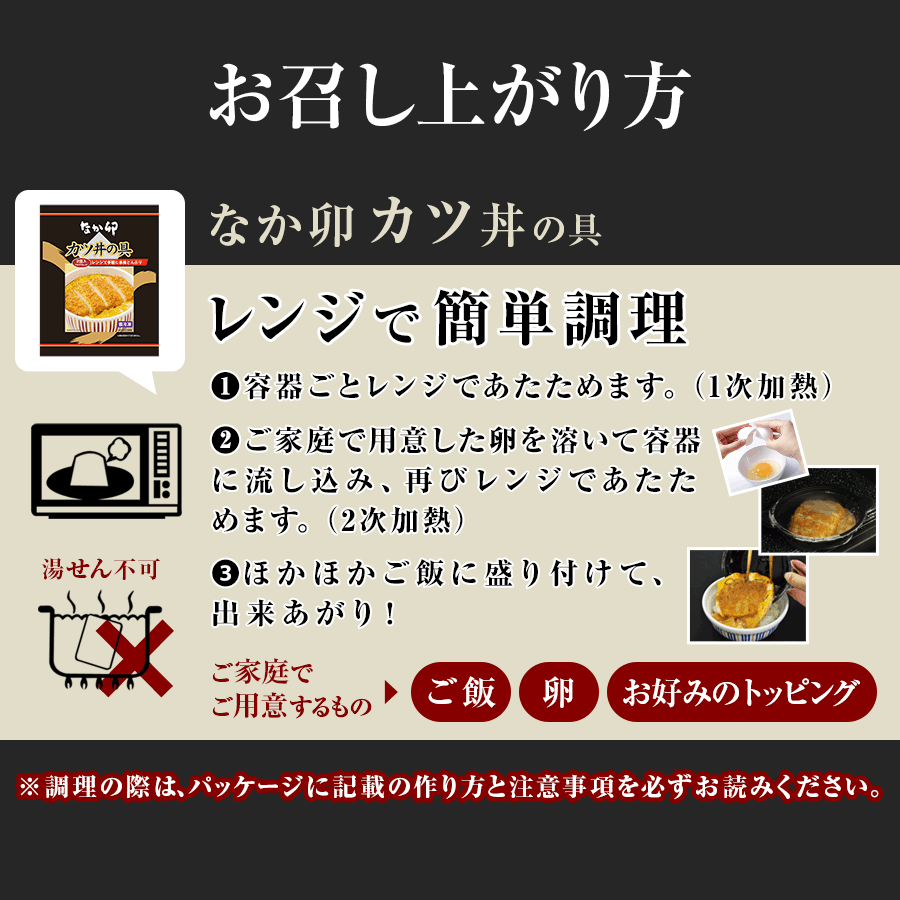 親子丼とカツ丼はご家庭の卵1個で、簡単に調理可能。