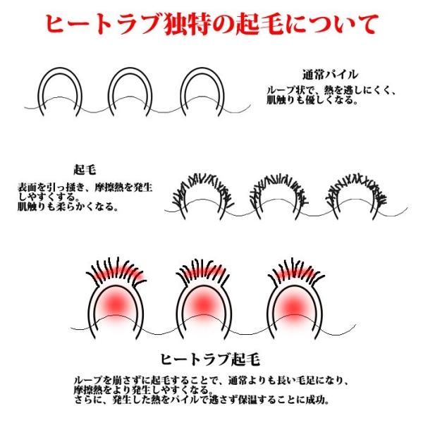 暖かさのヒミツは、「断熱保温」と「摩擦発熱」を実現する、独自ののダブルループバレル起毛。