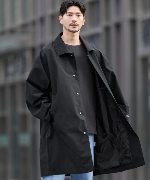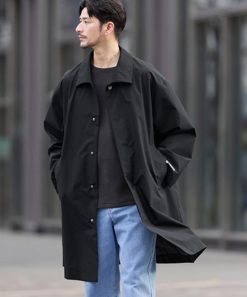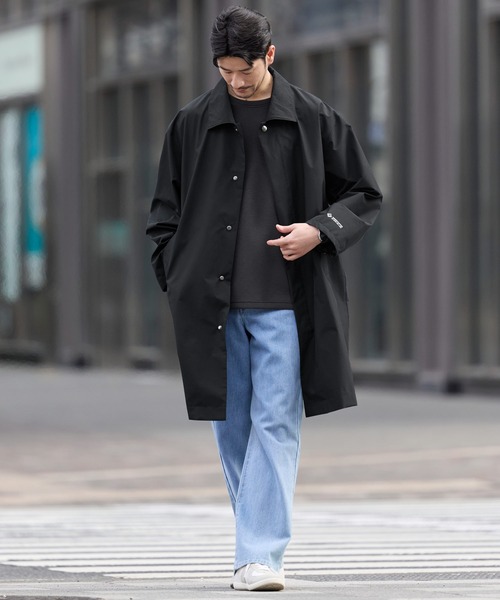 キーワード:ステンカラーコート コート メンズ ロゴ ロング丈 ワンポイント 防水 撥水 防風 無地 WEB限定 キレイめ ビジネス 春 大人カジュアル 別注 コラボ
