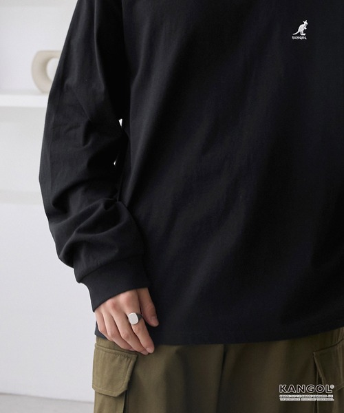 商品名:KANGOL/カンゴール 別注 ロゴ ワンポイント刺繍 オーバーサイズ長袖Tシャツ