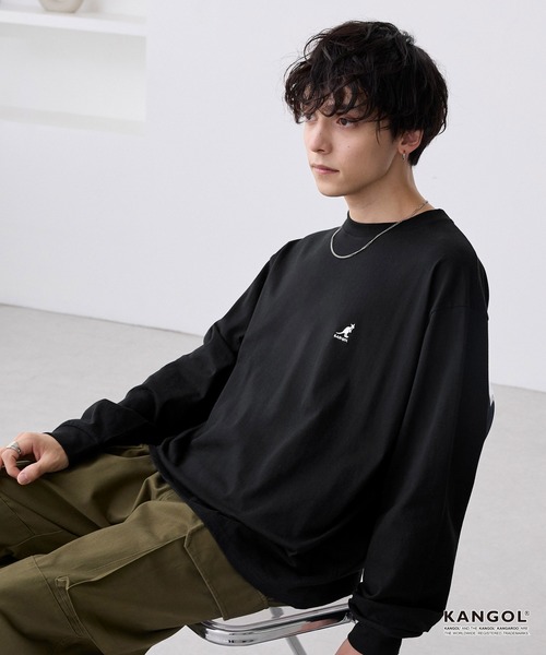 tシャツ KANGOL/カンゴール 別注 ロゴ ワンポイント刺繍 オーバーサイズ長袖Tシャツ メンズ レディース