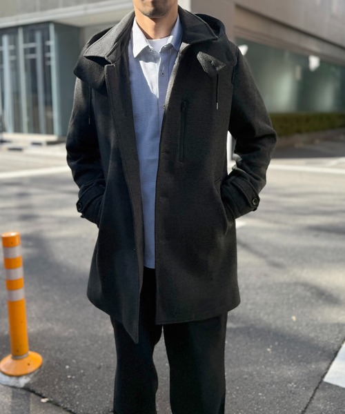 キーワード:ステンカラーコート コート メンズ フード取り外し ロング丈 無地 キレイめ デート ベーシック 公園 大人カジュアル 冬
