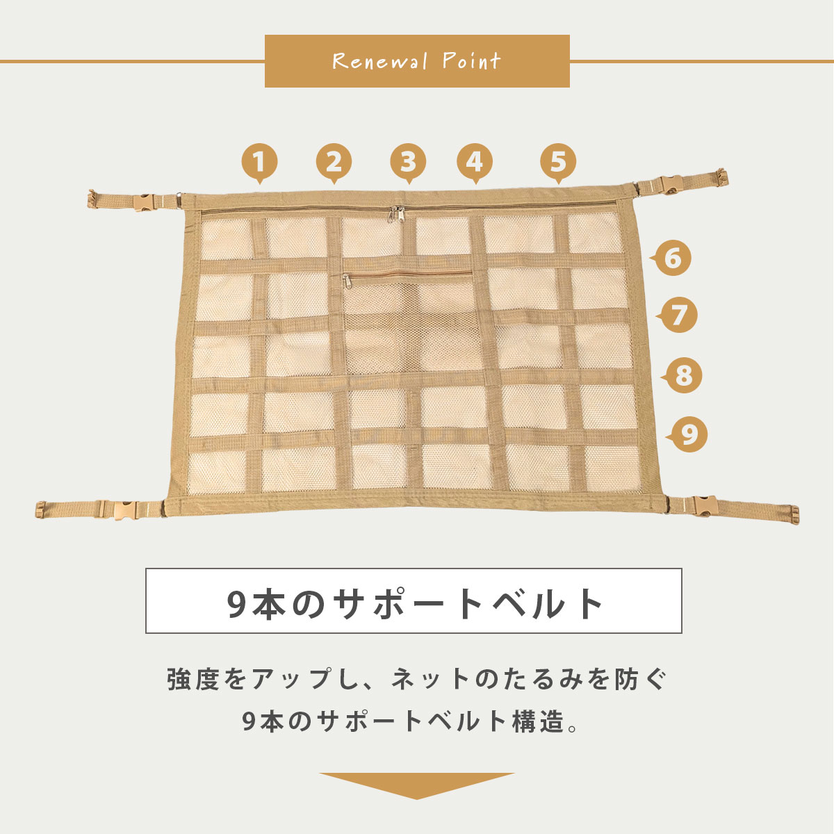 ・構造設計を見直し。サポートベルトが入ったネットへデザイン変更。