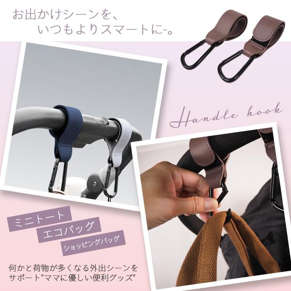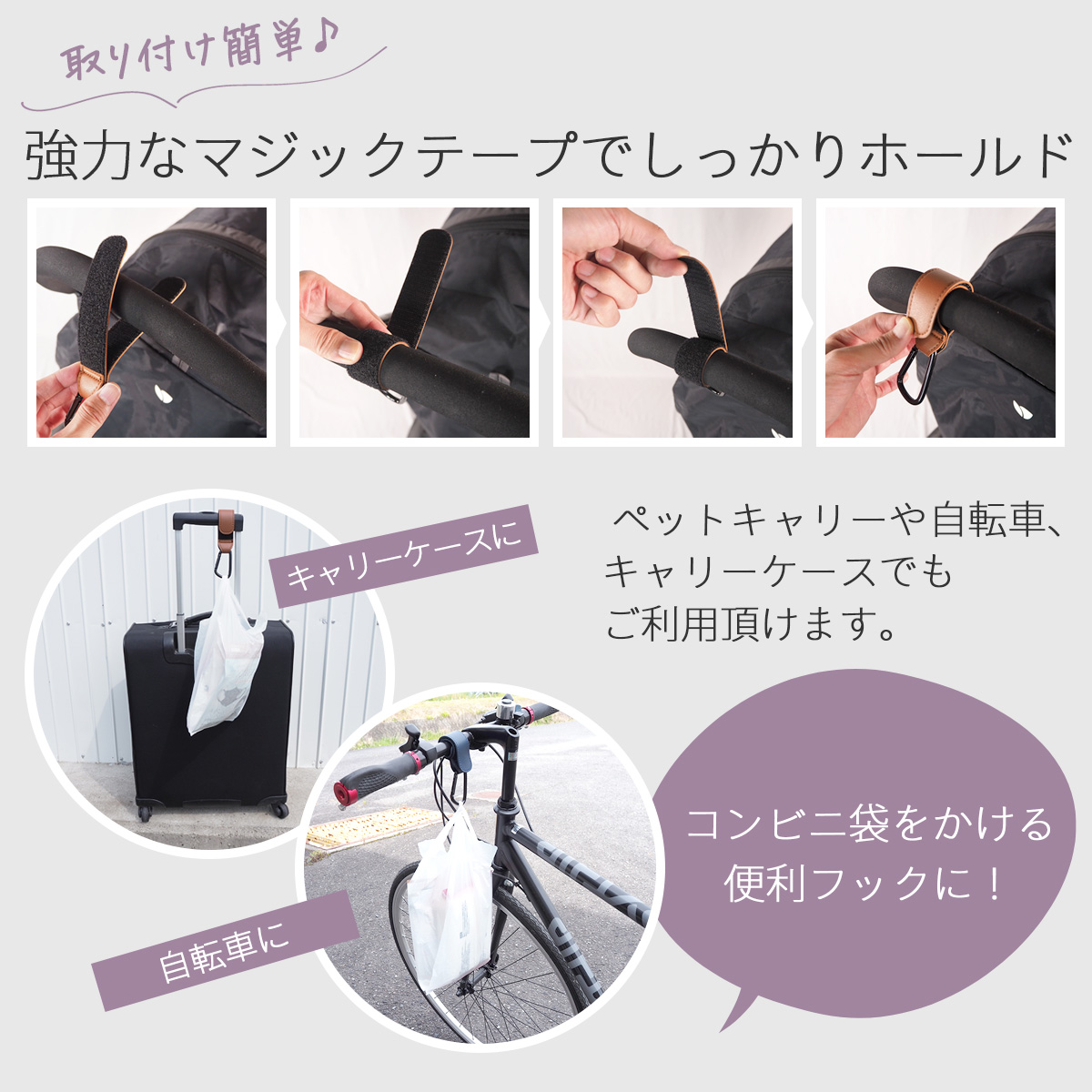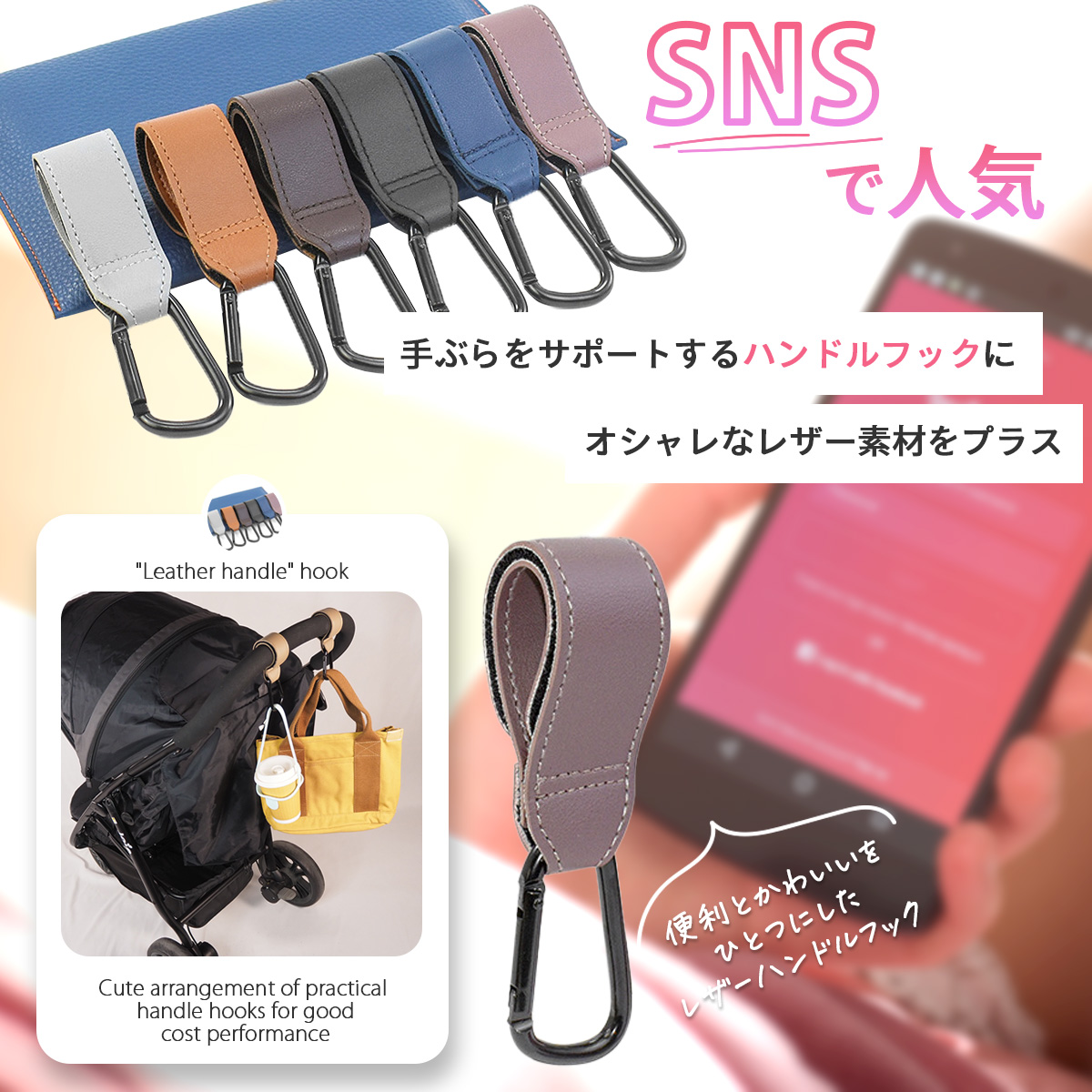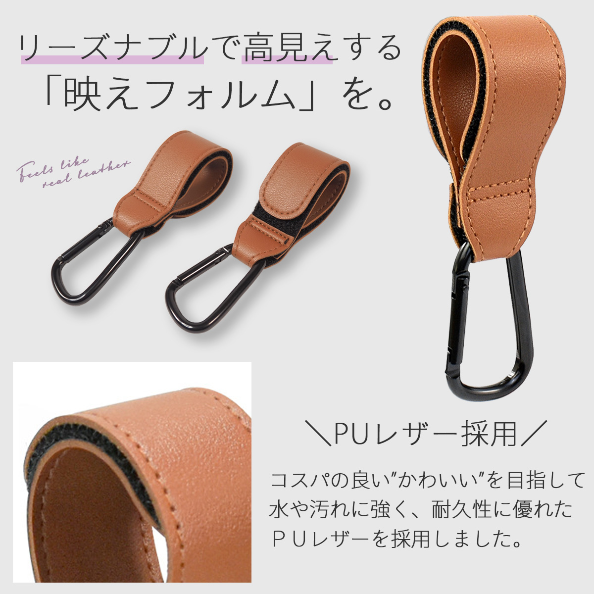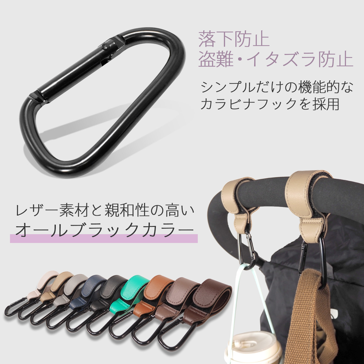 ベビーカーフック ハンドルフック カラビナ フック レザー 革 2個セット ベビーカー ハンドル おしゃれ マジックテープ アクセサリー ドリンク 高級感