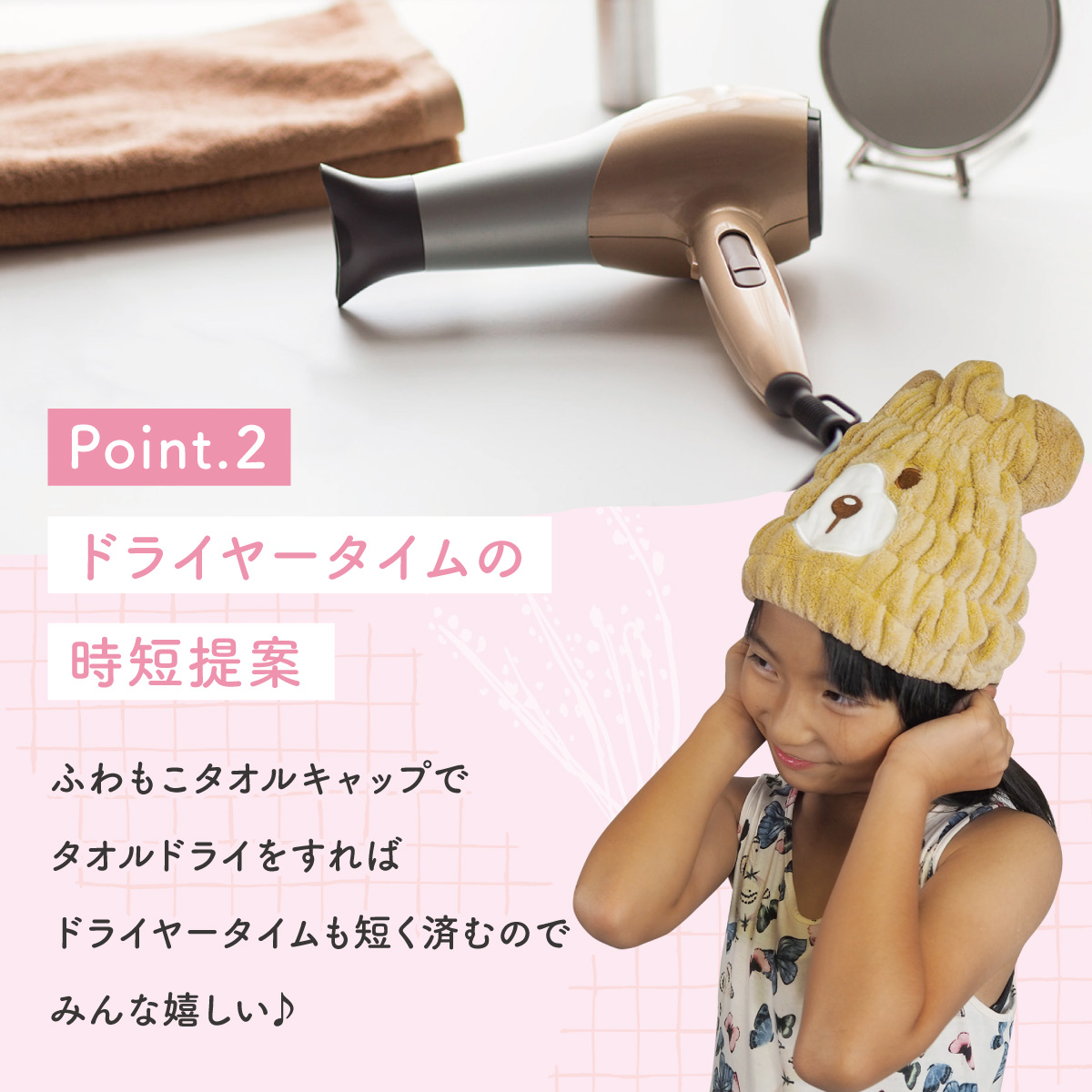 タオルキャップ ヘアタオル 吸水 乾かす 男の子 女の子 ヘアキャップ ドライキャップ お風呂上り お風呂 ドライヤー ヘアドライ タオルドライ