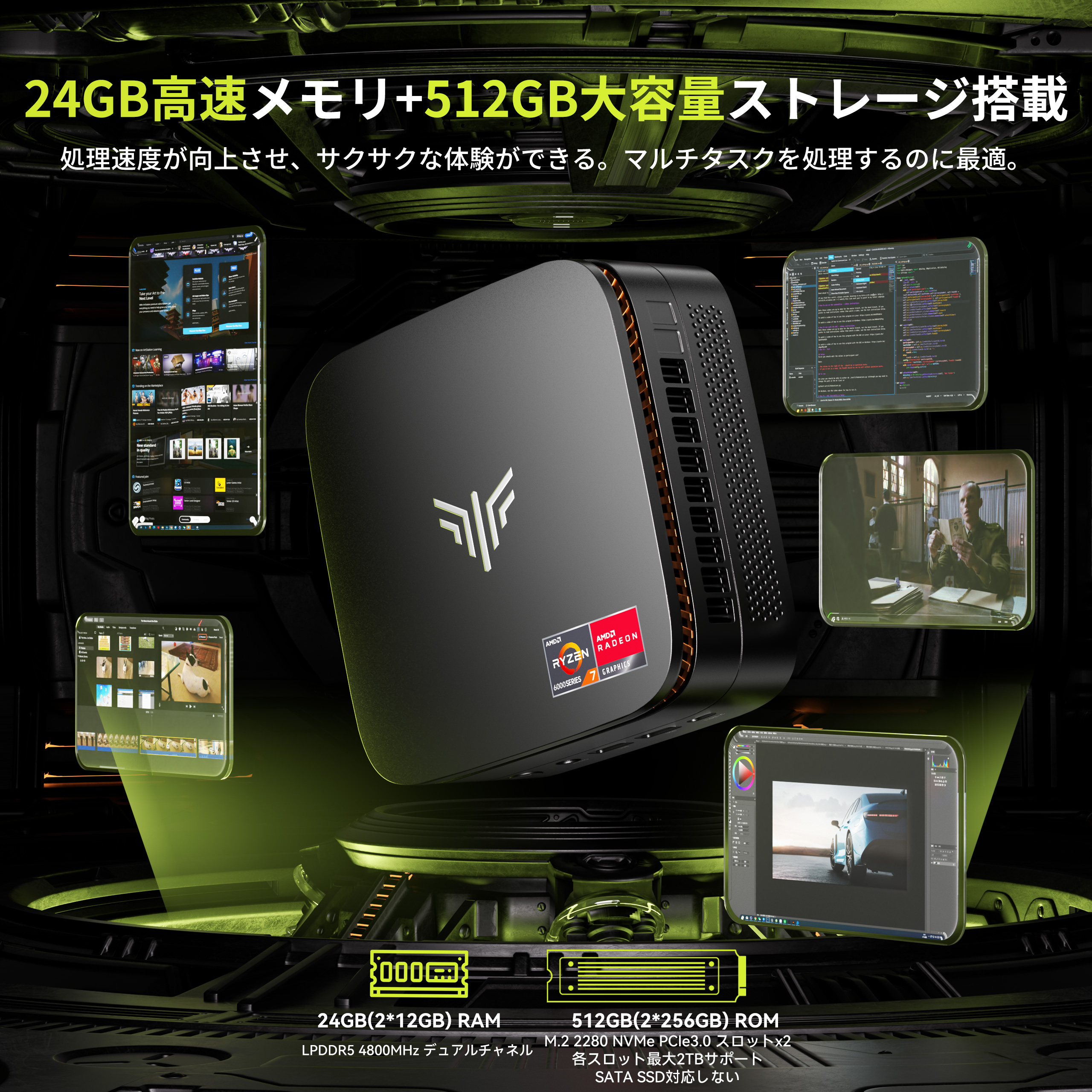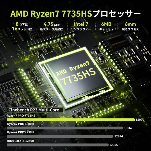 OEM Key保証 ミニPC【AMD Ryzen7 7735HS 24GB+512GB】 ミニPC Win11Pro 3画面出力 2.5GbpsLAN WiFi6 HDMI 省エネ 小型パソコン ゲーミングpc(H1-7735-24512)