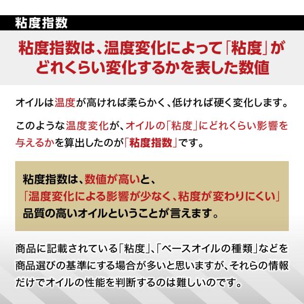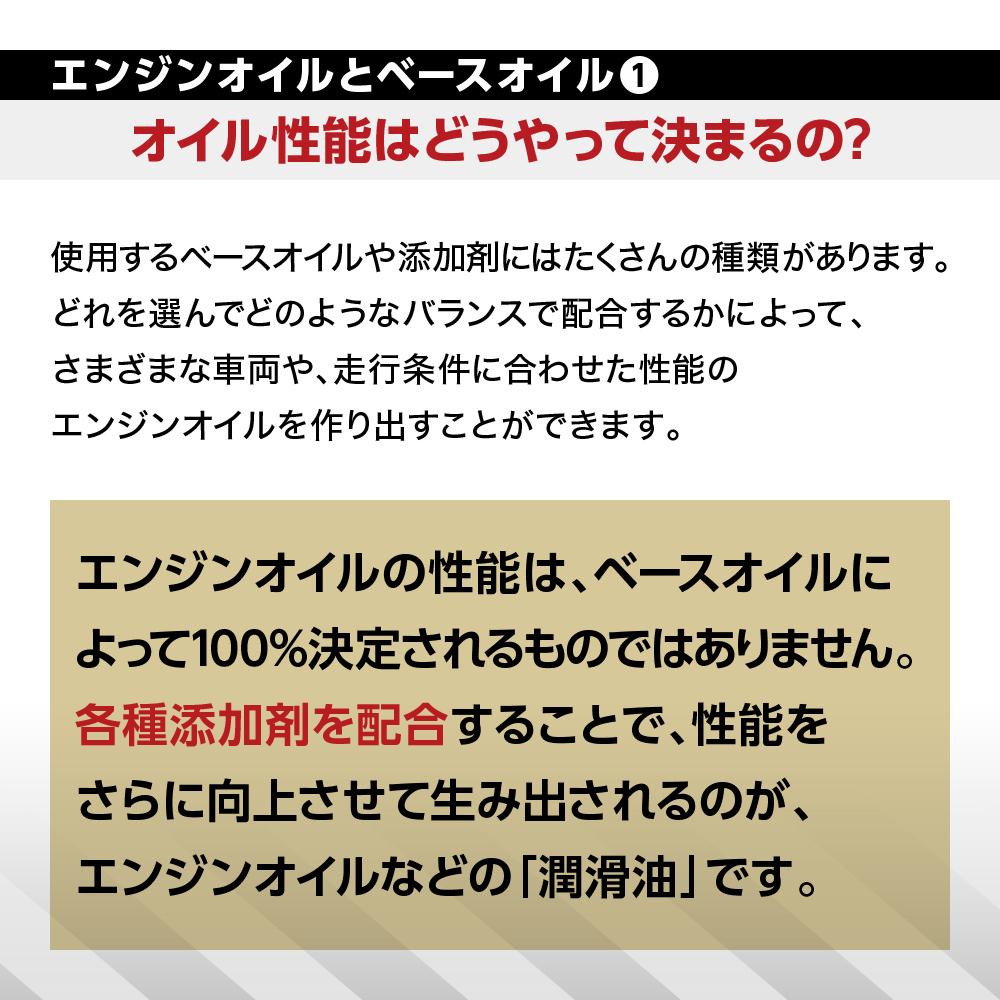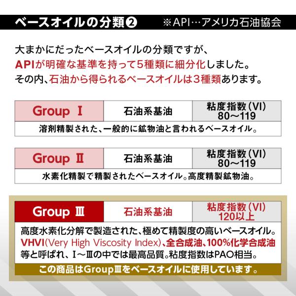 VHVI(グループIII)の化学合成油をベースに、各種添加剤を有効に配合しました。