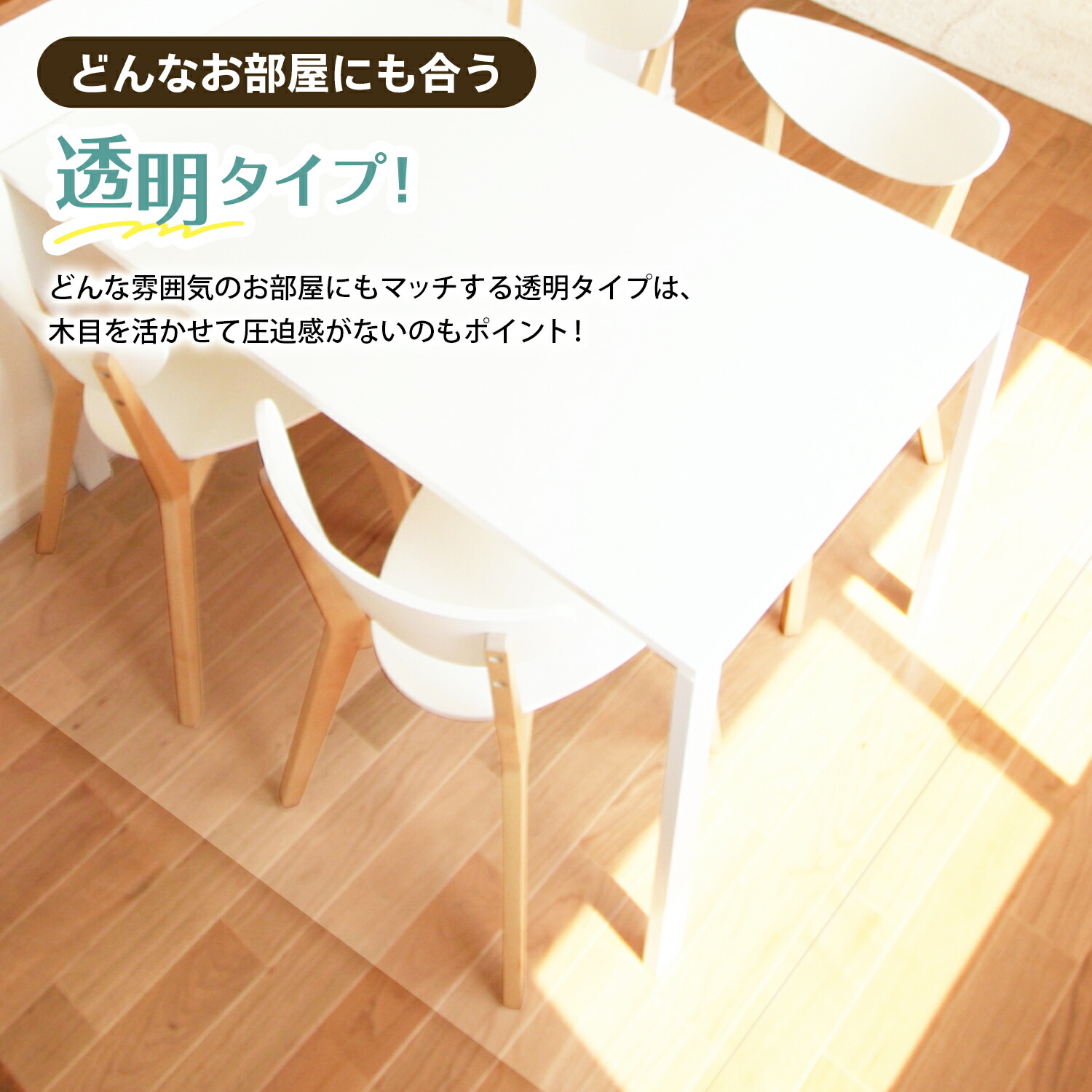 ダイニングマット 透明 撥水 180 x 240 cm [国際標準規格準拠] クリア カーペット フロア シンプル 床暖房対応 テーブル チェア 用 保護 マット PVC 厚さ1.5mm