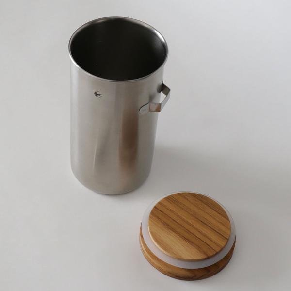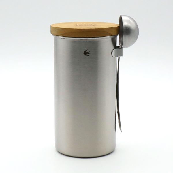 金属加工の産地の新潟県燕(つばめ)市で製作されたステンレス製のキャニスターです。メジャースプーン( 別売)が収納できるフック付き。チーク材の木蓋は、樹脂パッキン仕様でしっかり密封性があります。