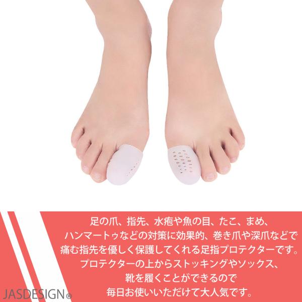 足の爪、指先、水疱や魚の目、たこ、まめ、ハンマートゥなどの対策に効果的、巻き爪や深爪などで痛む指先を優しく保護してくれる足指プロテクターです。