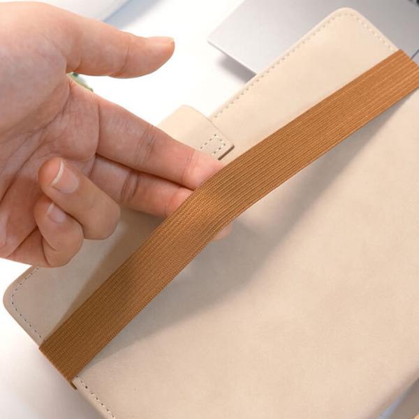 手帳やノートなどの表紙に取り付ける事ができて持ち歩きに便利。