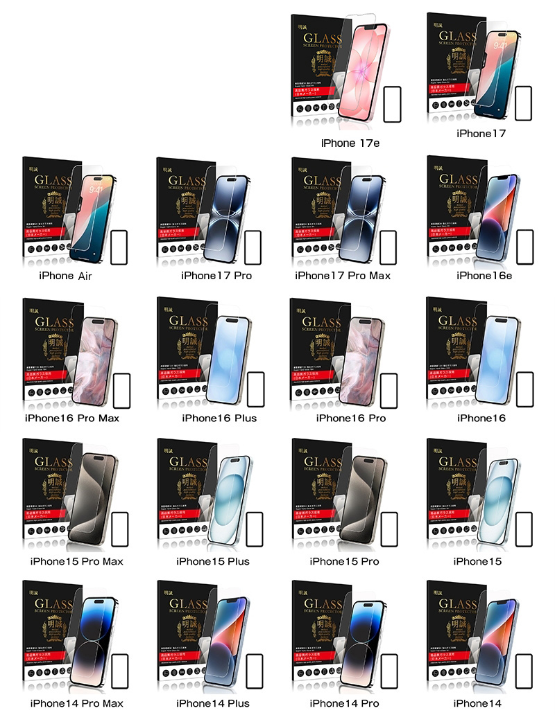 【2枚セット】iPhone17 17Pro Air 17ProMax 17e 強化ガラス保護フィルム iPhone16 16Plus 16Pro 16ProMax 16e 傷防止 iPhone15 14 13 12 11 Xシリーズ用 極薄型
