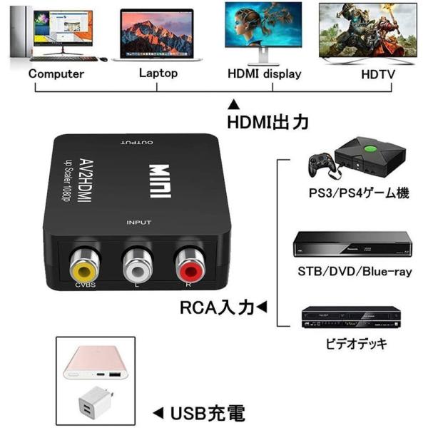 AV to HDMI 変換 コンバーター AV to HDMI 変換 端子 RCA to HDMI 1080p 変換 コネクタ デジタル アナロ