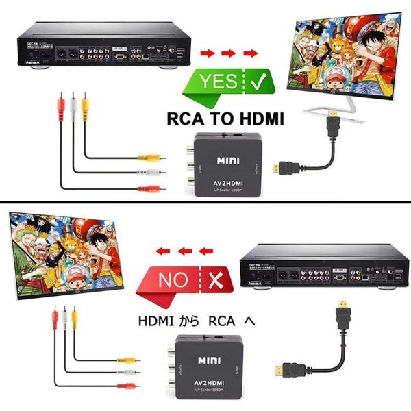 ミニサイズのAV2HDMIコンバーターは、アナログコンポジット(RCA3/CVBS)からHDMIに変換します。逆方向には使えません。