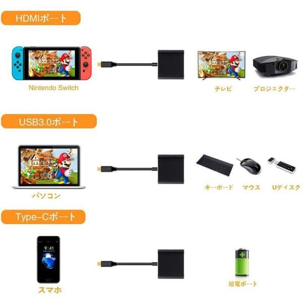 Type C Switch HDMI 出力 3in1 Switch ドック スイッチ Type C to HDMI変換アダプター テレビ コンピ