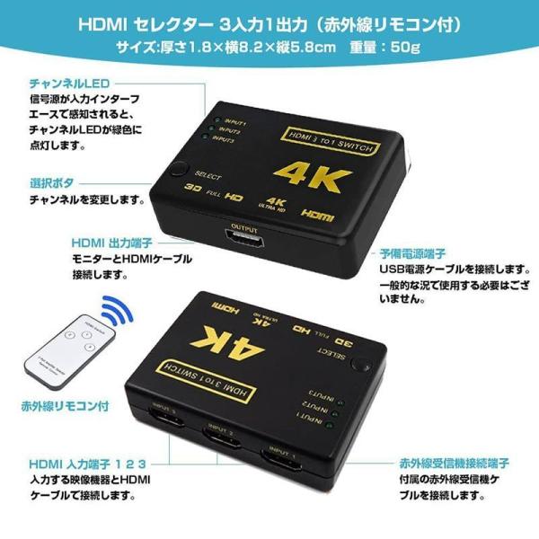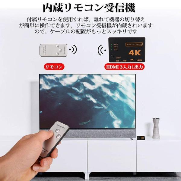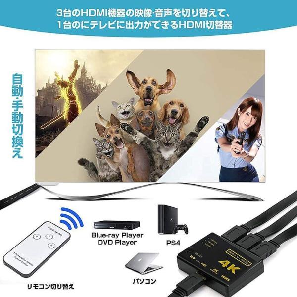 HDMI 切替器 分配器 3入力1出力 4K セレクター 1080p 3DフルHD対応 自動手 動切り替えリ リモコン HDTV Blu-Ray