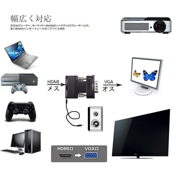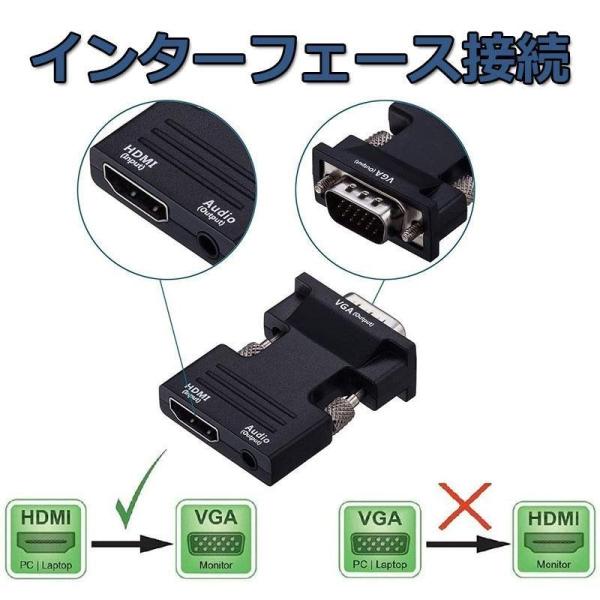 HDMI to VGA 変換アダプター ビデオアダプタ 音声出力 3.5mm ケーブル 付き 電源不要 オーディオ 1080p ビデオ出力 コン