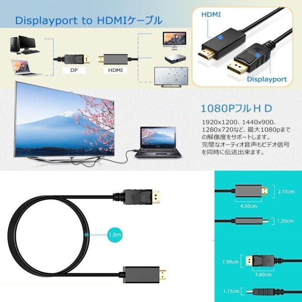 DisplayPort to HDMIケーブル ディスプレイポートto HDMI アダプター 逆に転換不能 DP ケーブル フルハイビジョン 1