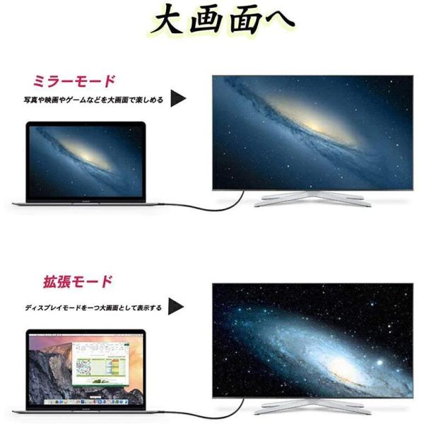 【高解像度&巨大拡張】映像/音声転送データを同時に、フルHD(1080P)約4倍の高解像度(3840x2160)の解像度をサポートし、鮮やかな色と鮮明な画像が示される。また、3D,1080P,720P,480Pまで互換にも対応しています。4Kモニター、テレビ対応モデルで、高品質なオーティオとビデオ両方対応し、驚きの精細な画質を提供できます。