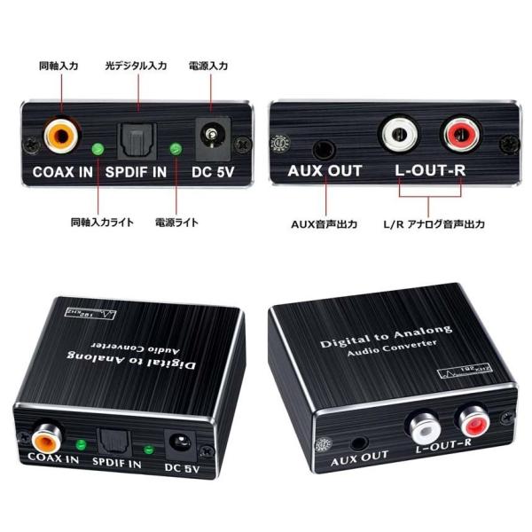 デジタル DAC アナログ 変換器 光・同軸入力→RCA+3.5mmステレオ出力 オーディオ 変換器 光デジタル アナログ 変換 DAコンバータ