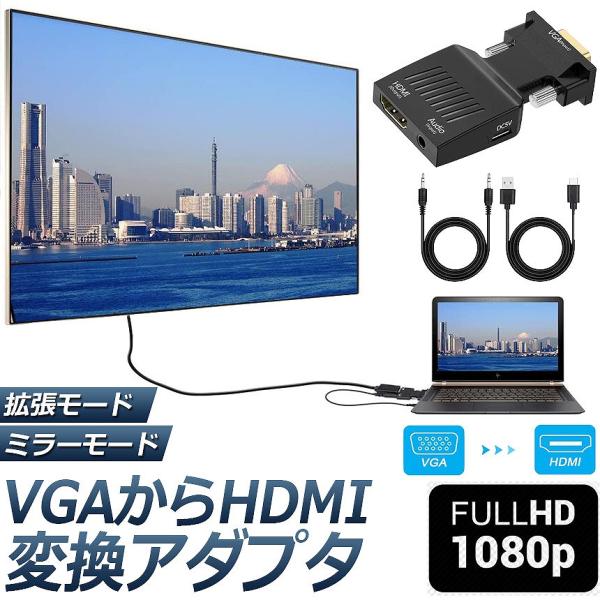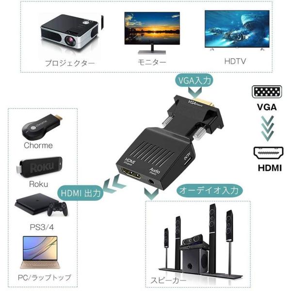 VGA to HDMI 変換 アダプター VGA to HDMI Adapter VGA to HDMIコンバーター オーディオ付き 1080p