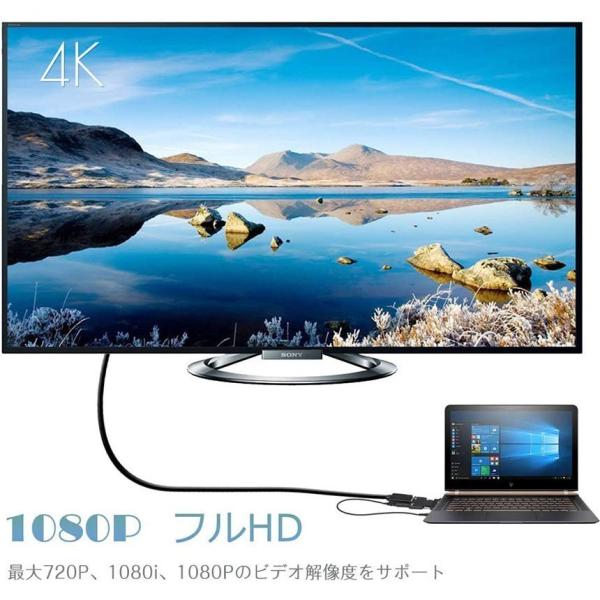 【ビデオとオーディオを同時にサポート】最大1080p(1920x1080/60Hz)までのフルHDビデオ解像度、24ビットをサポートし、3.5mmオスAUXミニジャックを介してステレオオーディオを送信します。