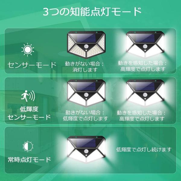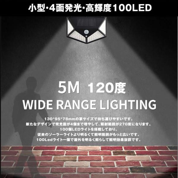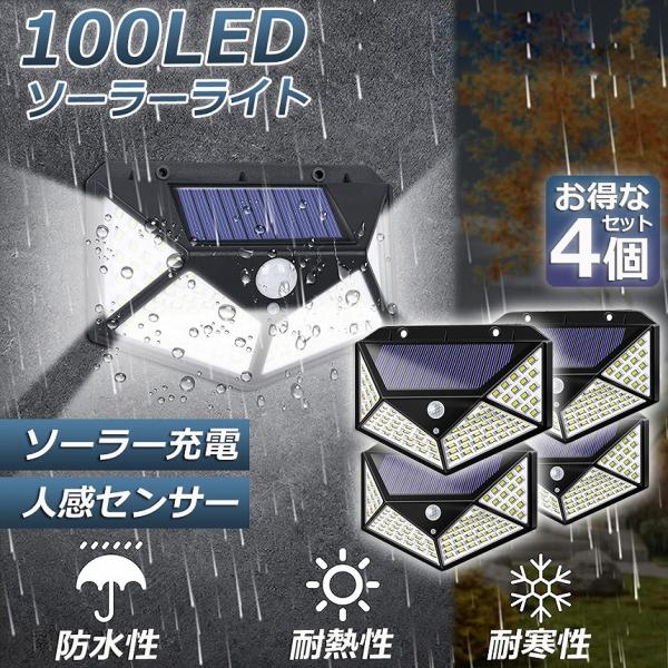 センサーライト 4個セット 100LED 屋外 ソーラーライト 4面発光 高輝度 防犯 人感 防水 屋外照明 300°照明範囲 防犯ライト 3つ