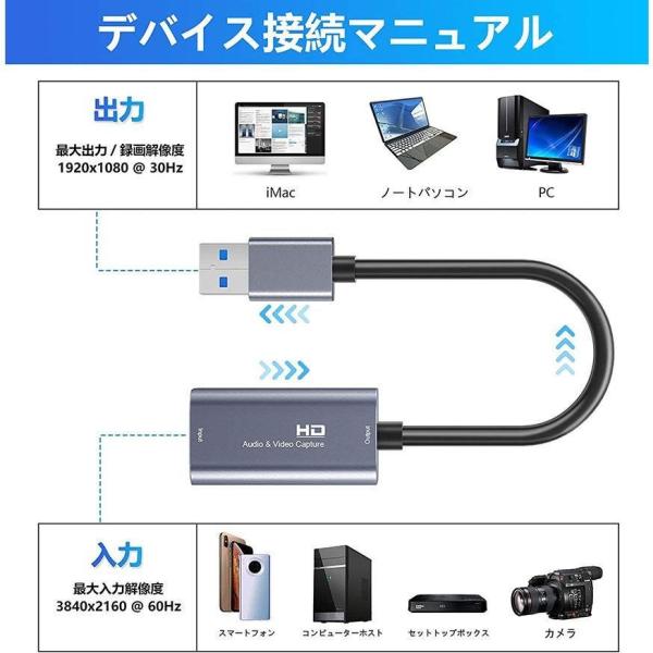 【HDビデオキャプチャ&ゲームキャプチャ&オーディオキャプチャ機能】高速USB2.0テクノロジーを搭載し、1080P60HZ30FPSHDMIHDビデオ信号をキャプチャおよび転送することができます(最高解像度は3860x2160、フレームレート:30fps)。