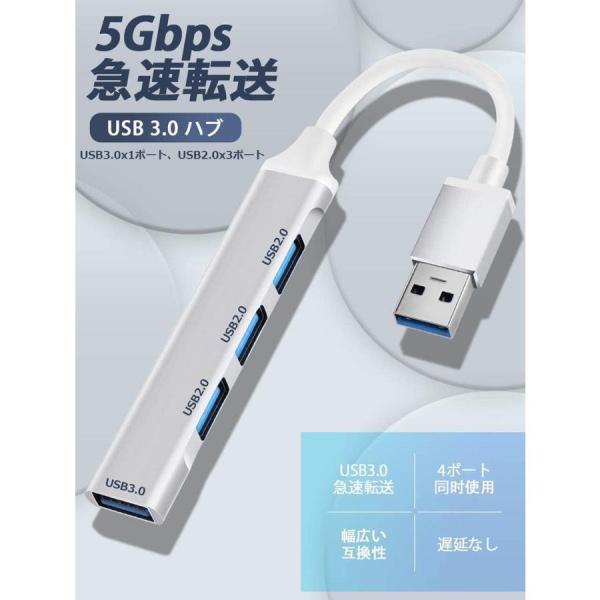 【3+1マルチポート拡張】パソコンのUSBポート1つで、簡単に4つに拡張できるUSBハブ(USB3.0x1、USB2.0x3ポート)です。USBフラッシュディスク、キーボード、マウス、プリンター、USB扇風機、ゲームハンドル、カードリーダーなど幅広いデバイスとの接続が可能、USBポートの不足を解消します。