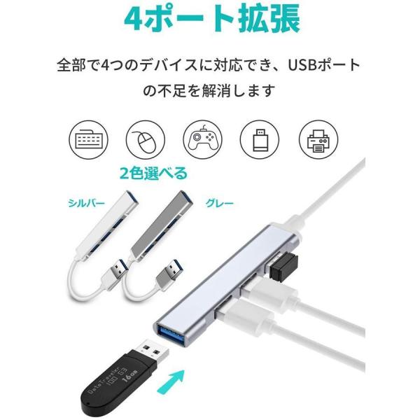 USB3.0 ハブ 超薄型 USB3.0 バスパワー ps4 USBハブ 4ポート ウルトラスリム 軽量 コンパクト Hub USBハブ Win