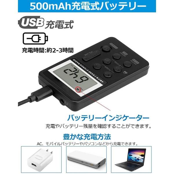 ラジオ ポケット FM AM ワイドFM対応 充電式 ミニーラジオ 小型ラジオ 携帯ラジオ 通勤ラジオ LCD液晶 画面 防災ラジオ 送料無料