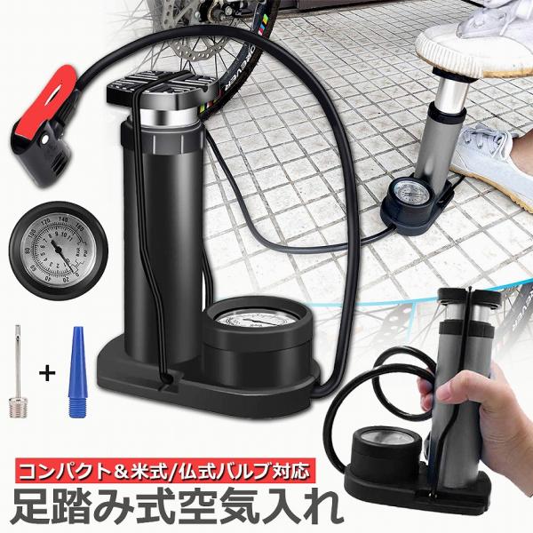 空気入れ 自転車 足踏み式 携帯用ポンプ 米式 仏式 送料無料