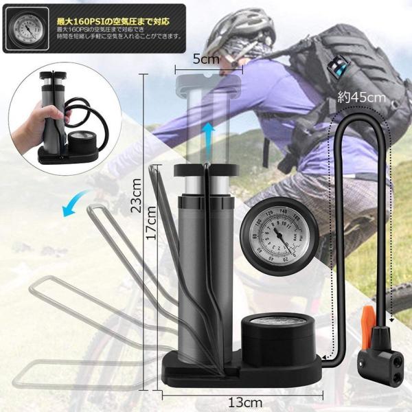 【エアゲージ付き】気圧計があるので、路面によって、タイヤの気圧が読めながら空気を入れられ、どんな路面でも快適に乗ることができます.多機能:道で広く使用されています