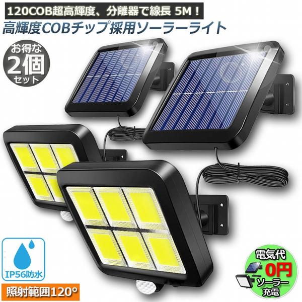 ソーラーライト 2個セット 120COB 5mコード付き センサーライト 防犯ライト ガーデンライト アウトドア ソーラーフラッドライト モーシ