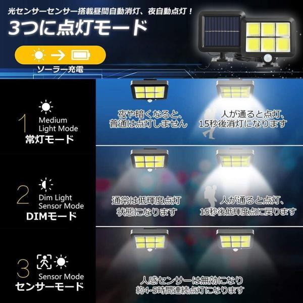 ソーラーライト 3個セット 120COB 5mコード付き センサーライト 防犯ライト ガーデンライト アウトドア ソーラーフラッドライト モーシ