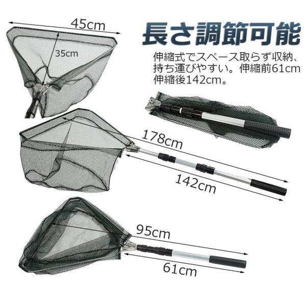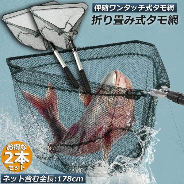 タモ網 玉網 2個セット タモ網 ランディングネット ワンタッチネット すくい網 三角網 折りたたみ式 伸縮式 アルミニウム合金製 調節可能 軽