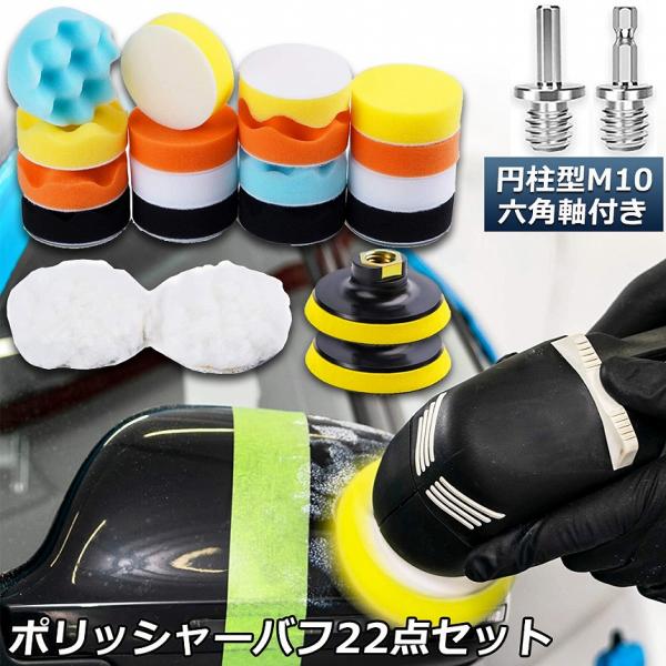 ポリッシャー バフ 80mm 22点セット 六角軸付き すぐ使える 仕上げ 電気ドリル インパクトドライバー用 洗車 車磨き スポンジ 研磨艶出