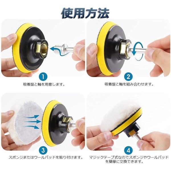 【取り付け簡単】 取り付け簡単、マジックテープ式で脱着する便利なポリッシャースポンジで、電動ドリルやグラインダーに取り付け可能です。